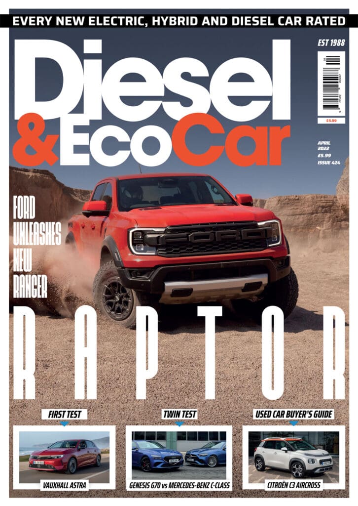 The cover of the April 2022 issue of Diesel&EcoCar features one of the most extreme pick-ups ever, with the new generation Ford Ranger Raptor on sale here next year. We’ve also got news on the Nissan Juke Hybrid, updated Nissan Leaf and the Jeep Grand Cherokee that arrives in showrooms this summer. There’s also news about Polestar’s upcoming 5 and the O2 concept, and Lexus’ new electric sports car. Finally, we’ve got all of the exciting electrification plans for Ford and Kia.